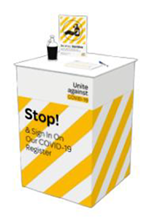 These rules along with hand sanitiser app QR code and manual sign in sheet will be displayed on a table like the below, at the front entrance of all branches: